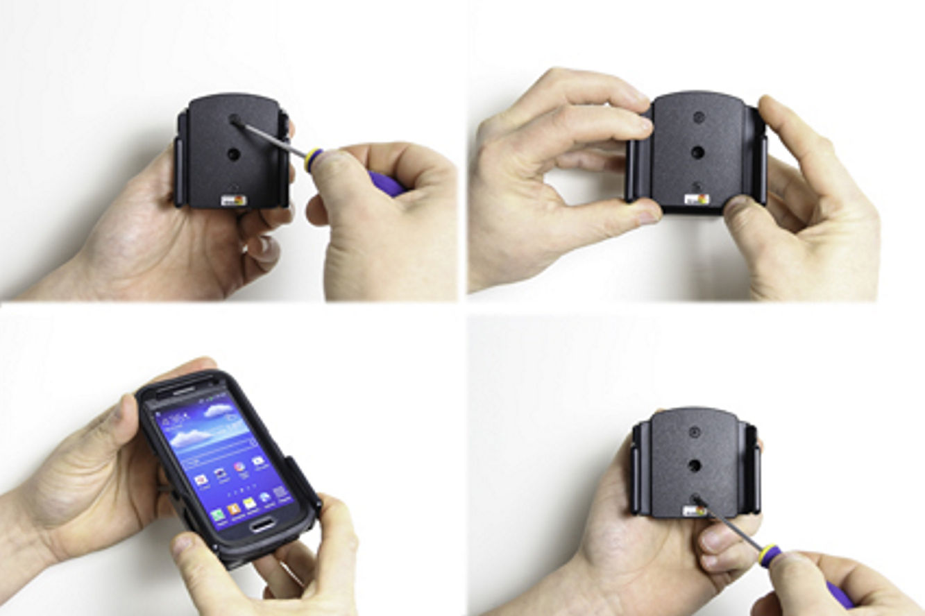 - Einmalige Anpassung: Vor der ersten Verwendung wird die Brodit 511309 auf die passende Breite Ihres Geräts eingestellt, damit es sicher in der Halterung sitzt.