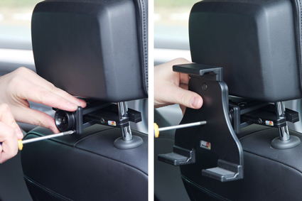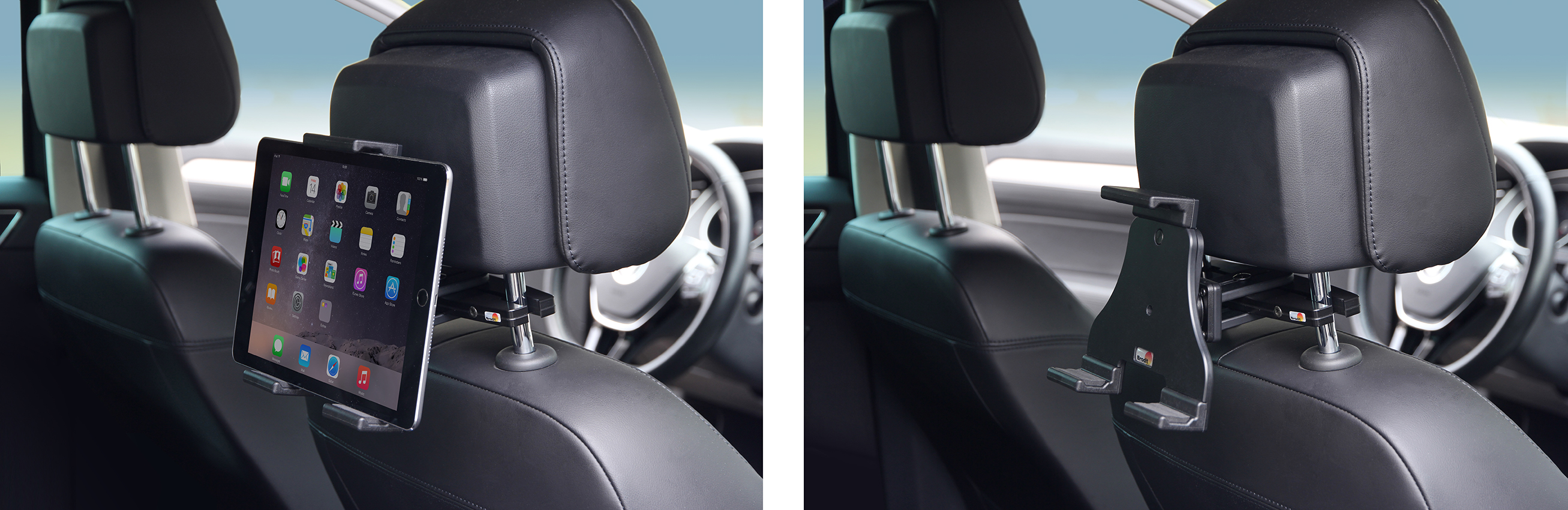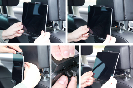 Die universelle Tablet-Halterung ist auf einem Kugelgelenk montiert. Das bedeutet, dass man den Blickwinkel sehr leicht einstellen kann, um Lichtreflexionen auf dem Gerät zu vermeiden. Selbstverständlich können Sie auch ein Ladekabel benutzen, wenn das in der Halterung ist . Des weiteren können Sie sehr einfach zwischen Portrait- und Landscape-Modus wechseln. (Durch einfaches drehen des Halters in die gewünschte Position.)