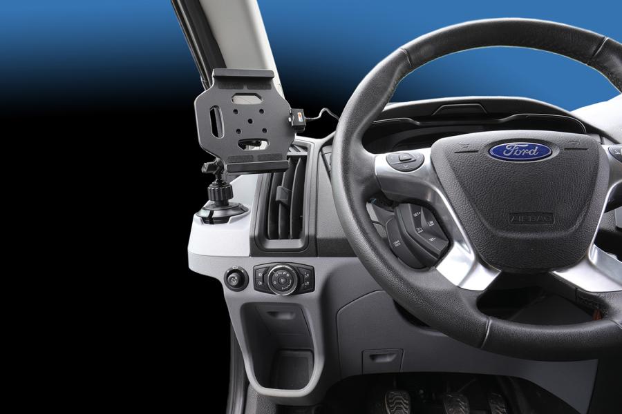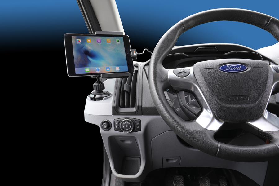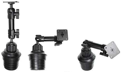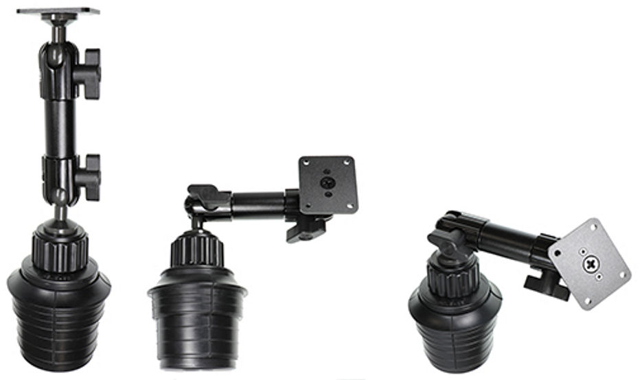 Brodit Standfuss / Sockelhalterung zur Montage im Getränkehalter, Länge: 267mm, Kugelkopf: 20mm Verstellbar: 360 Grad / 210 Grad Neigung