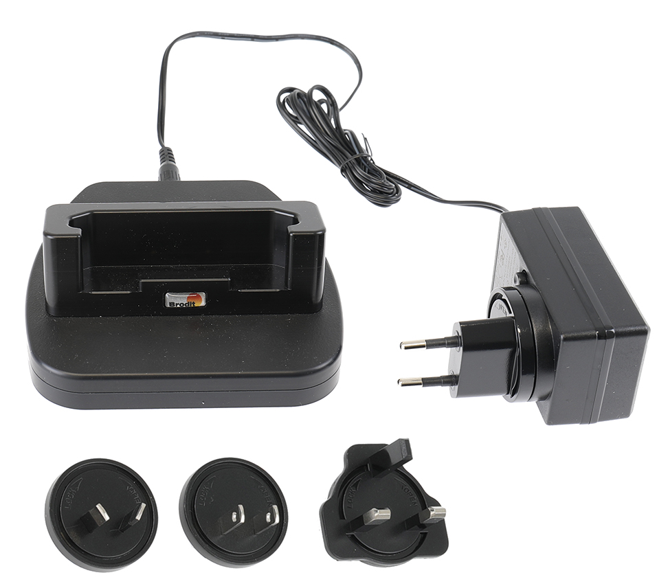 Brodit hat eine Desktop-Ladestation zum Laden des Geräte-Akkus entwickelt. Die Ladestation wird von Speditionen, Lagern, Schulen und Büros sowie im Gesundheitswesen, der Polizei genutzt. Überall dort, wo das Gerät im täglichen Betrieb eingesetzt wird.