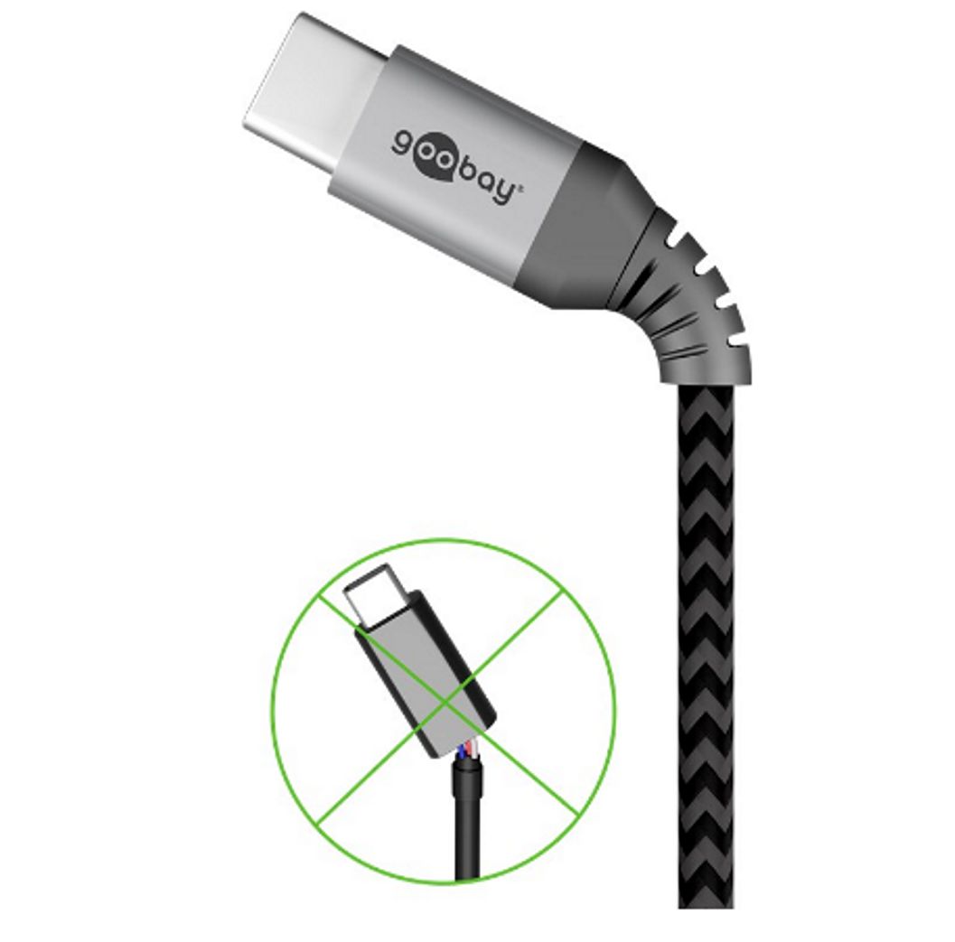 Goobay Daten- / Ladekabel USB-A auf USB-C , 0.5m, Textilummantelung, Black mit Metallsteckern, besonders robust! Stecker Typ A auf USB Typ C