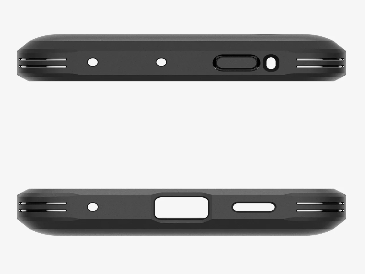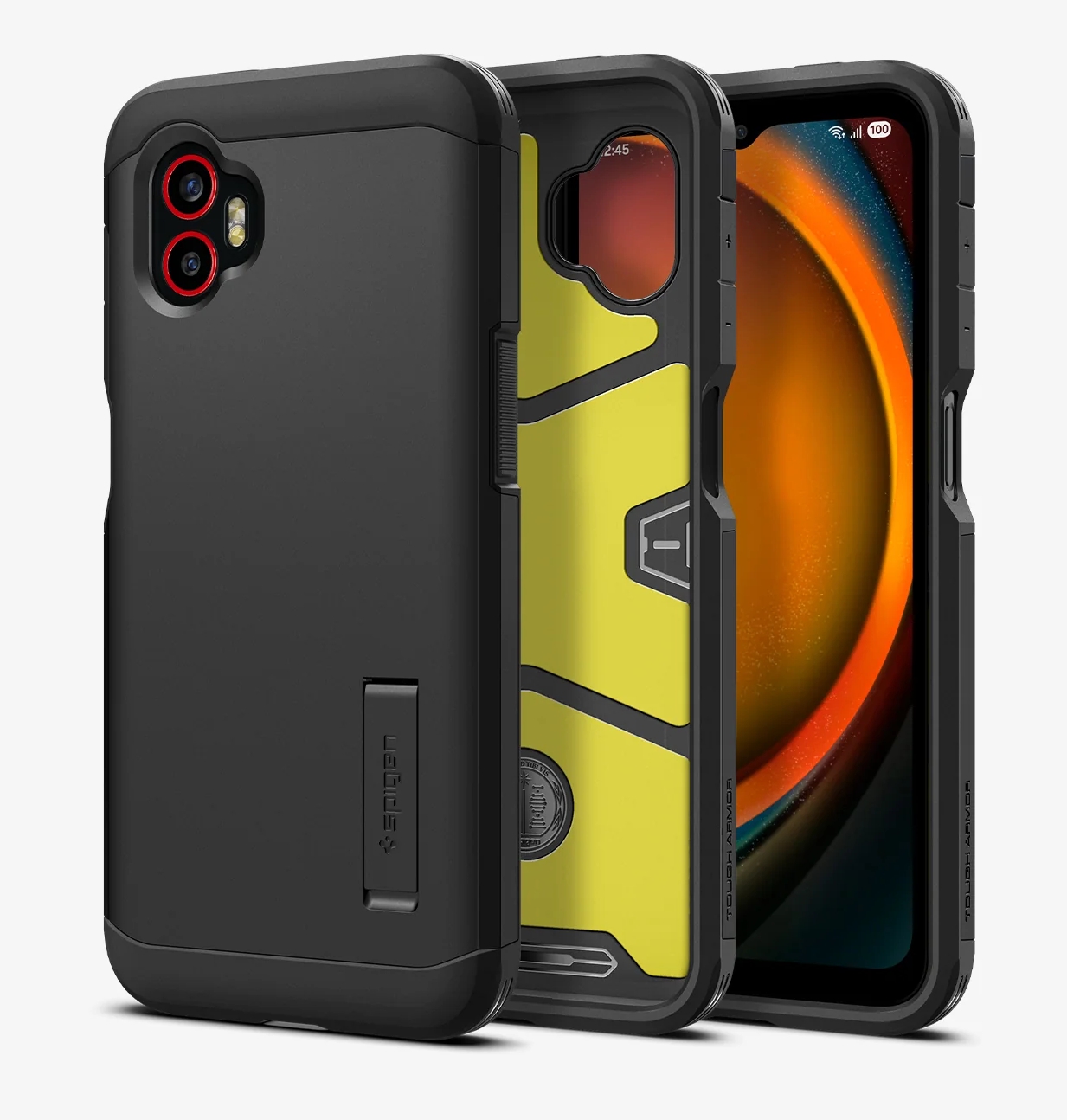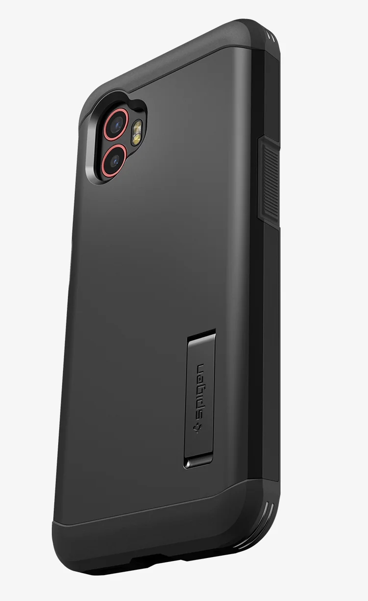 Die Case Tough Armor- Serie von Spigen ist ein robustes und hochwertiges Cover für das SAMSUNG Galaxy XCover 7 Pro. Seine zweiteilige Konstruktion besteht aus abriebfestem Thermoplast und einem Verstärkungsrahmen aus Polycarbonat. Im Inneren der Hülle befindet sich eine Füllung in Form von festem "Schaum", die zusätzlichen Schutz gegen Stöße oder Herunterfallen des Geräts bietet. Die Hülle passt perfekt und schränkt die Möglichkeit des kabellosen Ladens nicht ein. Die leicht erhabene Form des Gehäuses um die Kamera und den Bildschirm schützt es vor Kratzern, indem das Telefon knapp über einer ebenen Fläche angehoben wird.